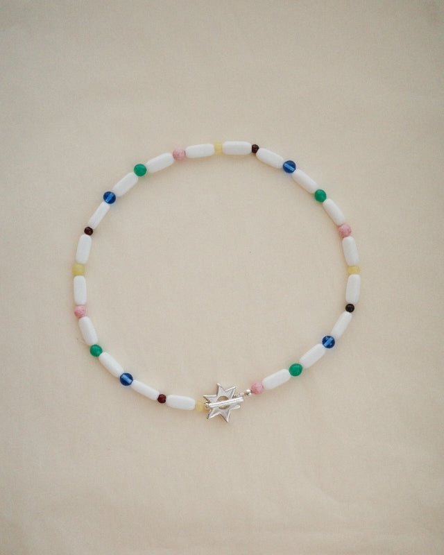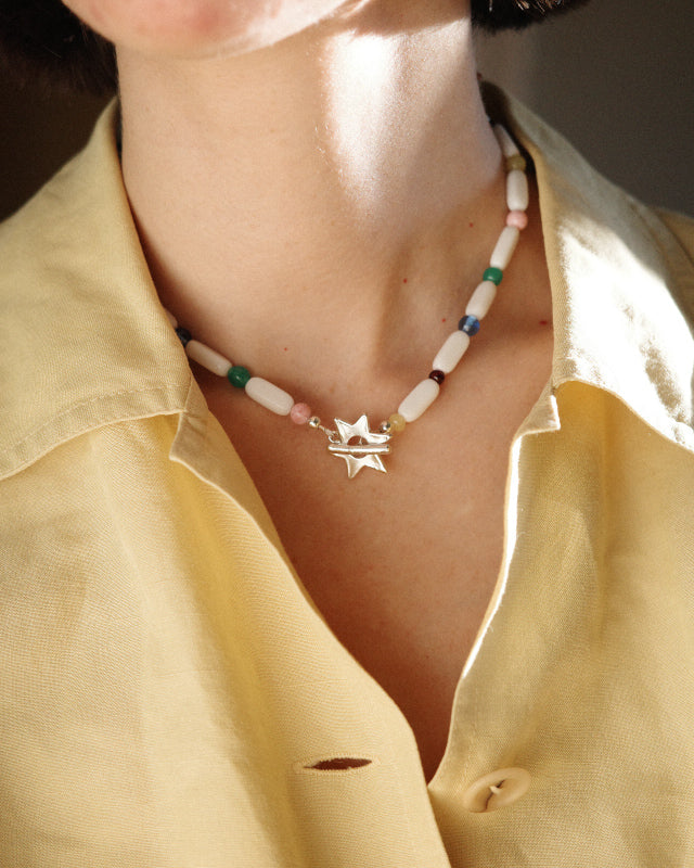 The Reclaimed collection is a super limited edition drop of one-of-a-kind necklaces. The beaded necklaces are handmade using vintage beads that I have sourced in the most glorious colours and quality and reimagined into an incredibly joyful colour palette.