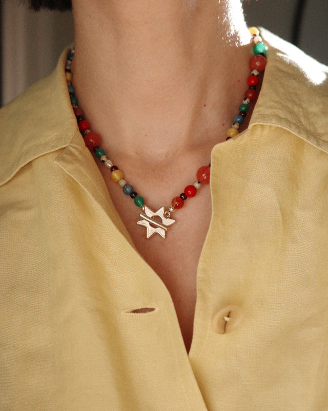 The Reclaimed collection is a super limited edition drop of one-of-a-kind necklaces. The beaded necklaces are handmade using vintage beads that I have sourced in the most glorious colours and quality and reimagined into an incredibly joyful colour palette.