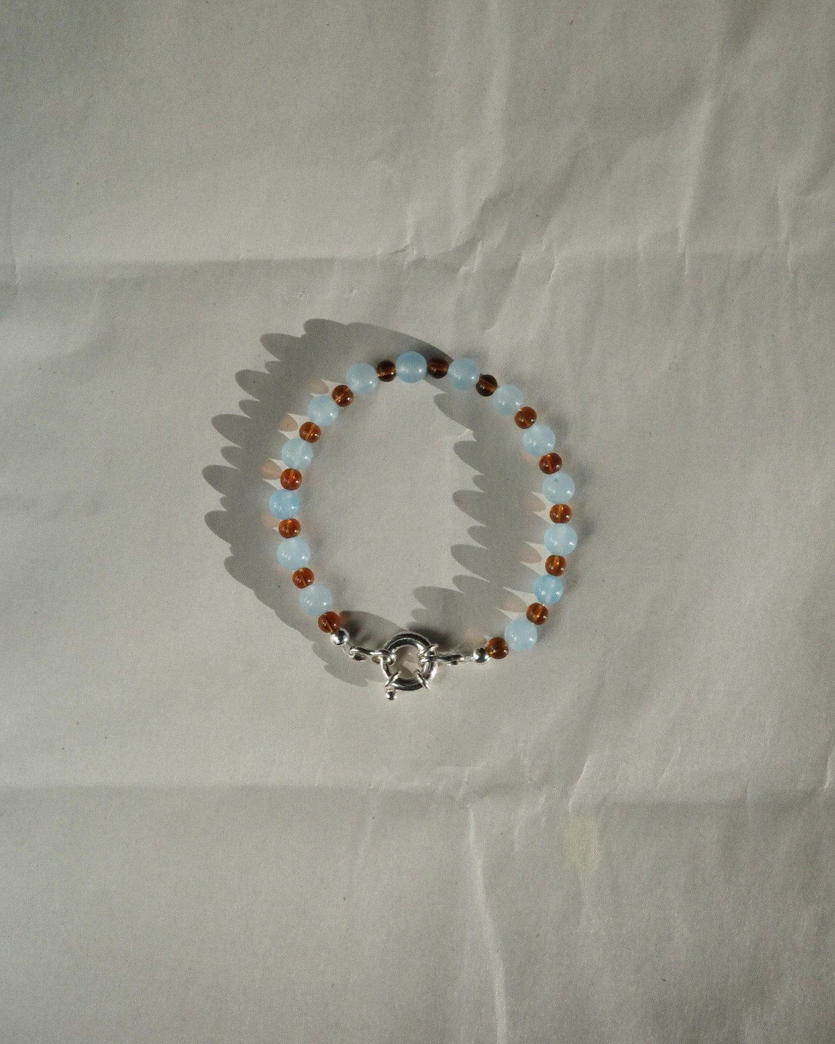 Handmade with a mixture of Semi Precious Stones and Glass, finished with a solid silver mini stacker clasp.