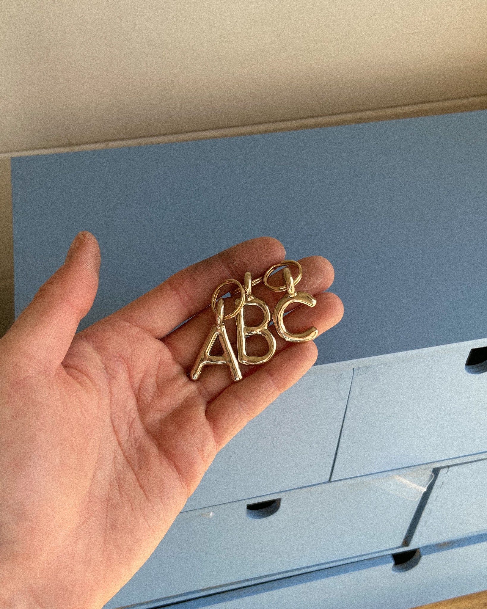 Made using the same wax moulding methods as the Wobbly Alphabet charms, each letter has its own slightly molten texture and each is an individual - just in a jumbo size! They’re the perfect size to sit in your hands when you carry your keys, a beautifully tactile little object to adorn your keys/bags/lanyards/anything you like!